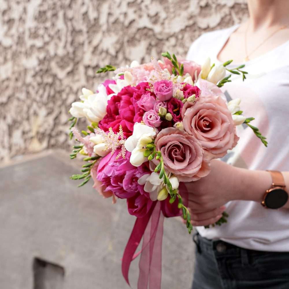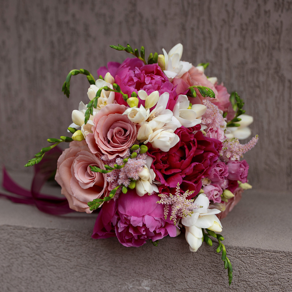 Be a memorable bride with the “I am strong” bouquet, a floral arrangement that harmoniously combines elegance and strength. This vibrant bouquet is made up of a refined selection of flowers in shades of deep pink and purple, symbolizing love and inner strength.