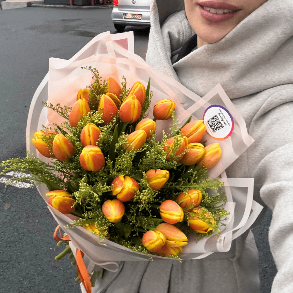 Un buchet special cu 31 de lalele portocalii. Aceste lalele “gigant” de culoare portocalie sunt o alegere minunată când vrei sa impresionezi o iubitoare de lalele. Partea și mai bună este că sunt disponibile din noiembrie și până primăvara târziu.