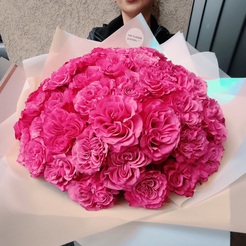 Un buchet special cu 51 de trandafiri roz din Ecuador. Acești trandafiri de grădină se remarcă prin culoarea, dimensiunea florii și aspectul ce semeană cu bujorul pentru iubitoarele de această floare, care este in extrasezon în lunile de toamnă, iarna.