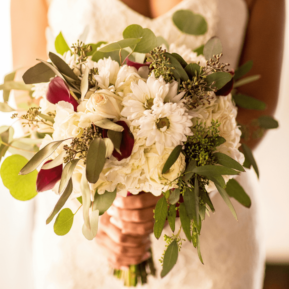Buchetul de mireasă “Sauvage” completat cu eucalipt conferă acest aspect freestyle, ideal pentru miresele care își doresc un look mai nonconformist.
