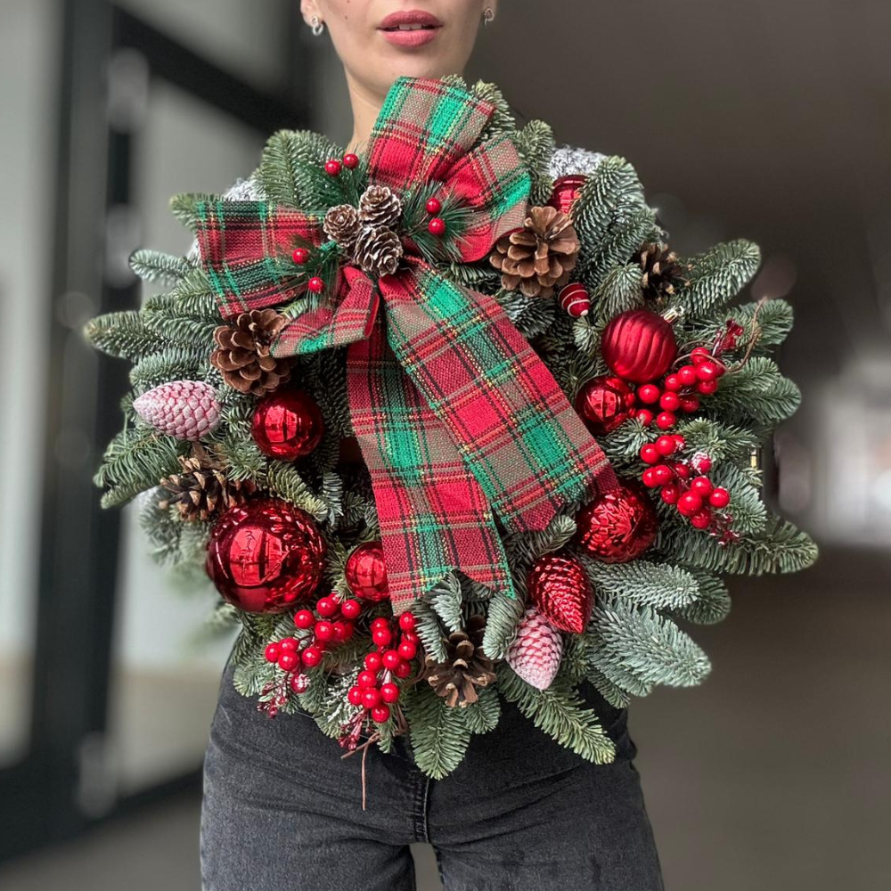 Îmbrățișează spiritul sărbătorilor cu această coroniță splendidă, confecționată din brad natural și decorată cu accesorii specifice de Crăciun. Perfectă pentru a adăuga o notă festivă oricărei case, această coroniță combină tradiția cu eleganța modernă.
