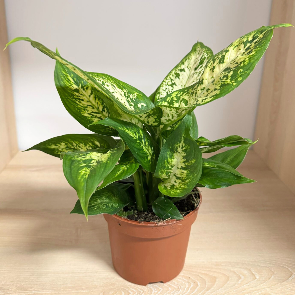Adaugă o notă de verdeață luxuriantă în locuința ta cu Dieffenbachia, cunoscută și sub numele de “Planta Bastonului Mut”. Cu frunzele sale mari și atrăgătoare, decorate cu modele de verde și alb, această plantă este perfectă pentru a aduce un strop de natură în orice colț al casei tale.