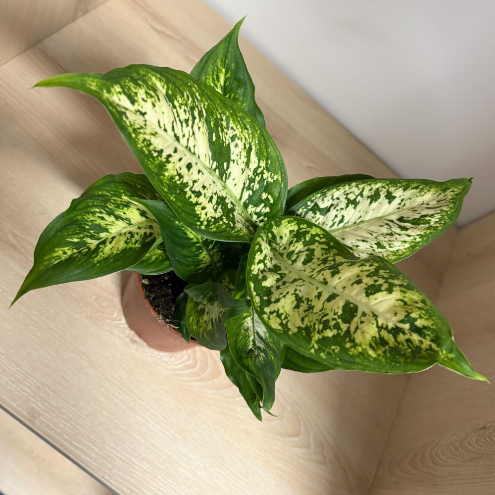 Lumină: Dieffenbachia preferă lumina indirectă, dar poate tolera și condiții de lumină redusă. Evită expunerea la soarele direct, care poate arde frunzele.