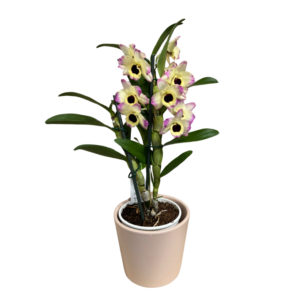 Denumire: Orhideea Dendrobium Origine: Dendrobium este originară din regiunile tropicale și subtropicale ale Asiei, inclusiv India, China și Himalaya. Știai că?: Orhideea Dendrobium este cunoscută pentru florile sale spectaculoase și parfumate, care apar de-a lungul tulpinii. Aceasta este una dintre cele mai populare specii de orhidee datorită frumuseții și diversității sale, fiind adesea folosită în aranjamente florale și ca plantă de interior.
