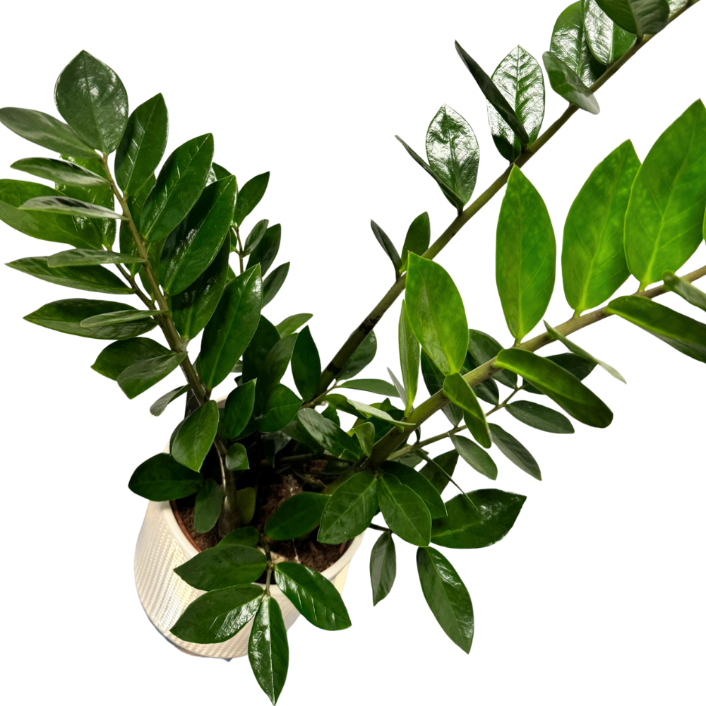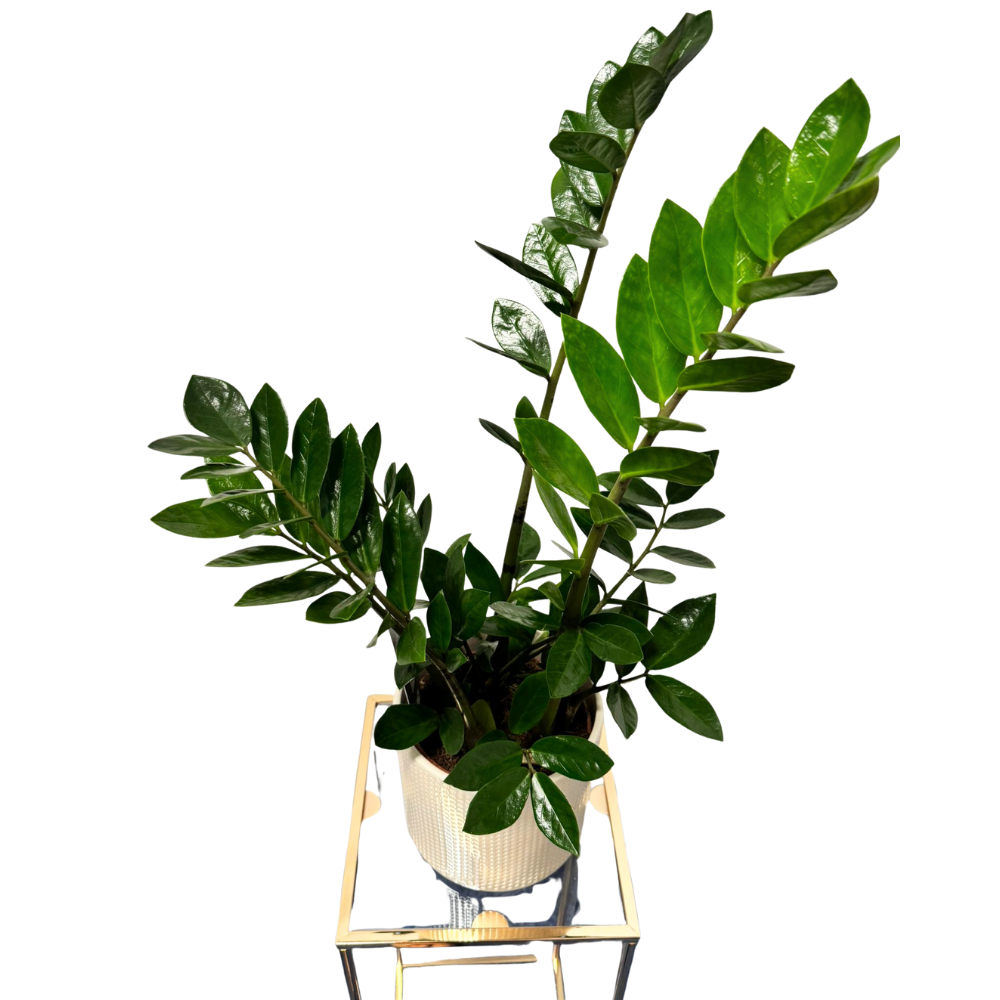 Zamioculcas zamiifolia, cunoscută sub numele de ZZ Plant, este o plantă de interior extrem de rezistentă și decorativă, ideală pentru persoanele ocupate sau spațiile cu lumină slabă. Frunzele sale lucioase, groase și de un verde profund îi oferă un aspect elegant, mereu proaspăt. Datorită aspectului arhitectural și cerințelor minime de întreținere, ZZ este adesea folosită în birouri, recepții sau locuințe moderne.